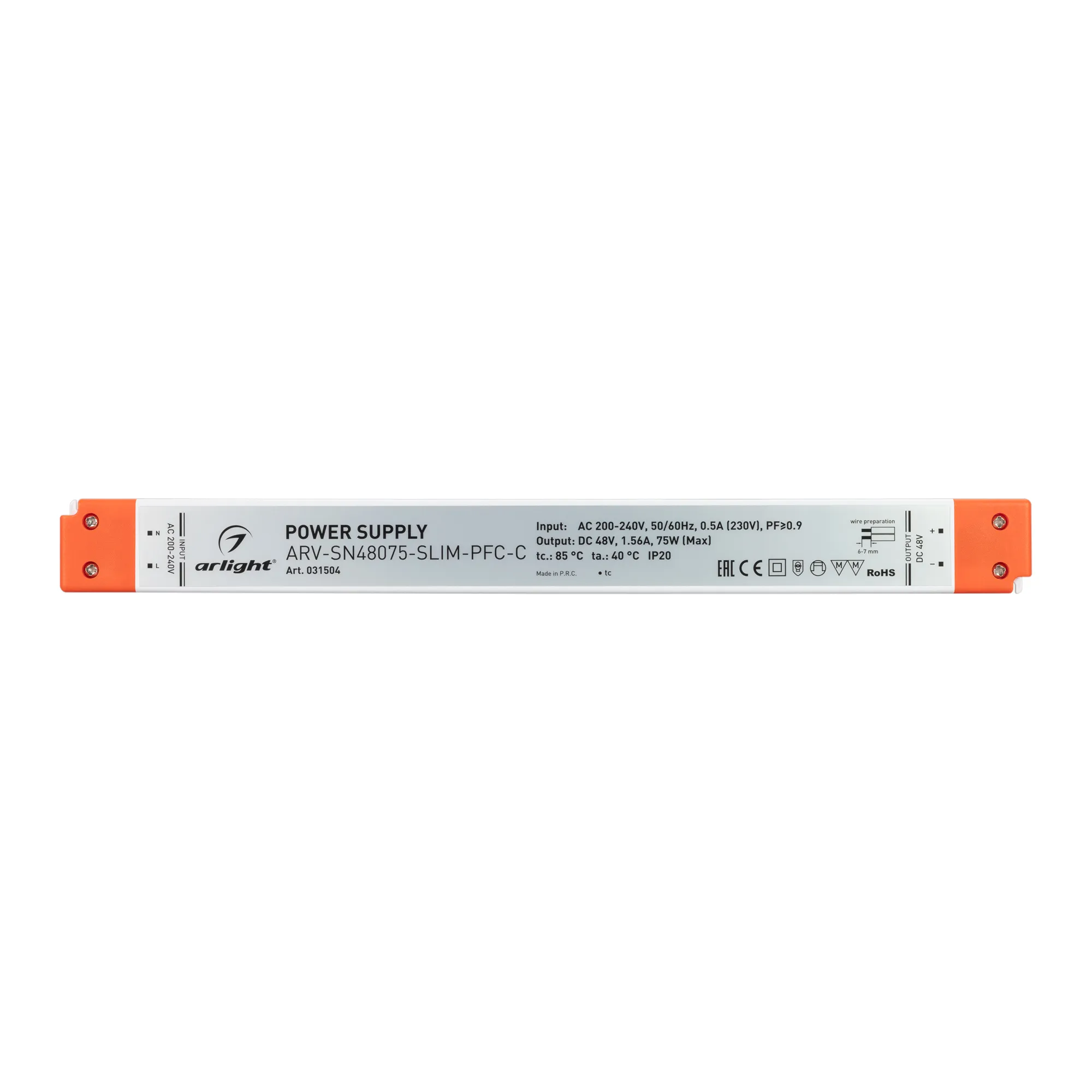 Наши специалисты знают все о продукции Arlight и с радостью помогут Вам выбрать комплектующие к товару "Блок питания ARV-SN48075-SLIM-PFC-C (48V, 1.56A, 75W) (Arlight, IP20 Пластик, 3 года)", или другие товары из раздела "тонкие [IP20, пластик]".